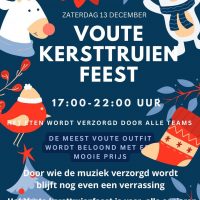 Het Voute kersttruienfeest komt er weer aan! Op zaterdag 13 december wordt de eerste seizoenshelft weer traditioneel afgesloten bij een gezellig feest voor alle senioren teams, vrijwilligers, supporters en MO20 van CVV Blauw-Wit. Het begint om 17:00 uur en het duurt tot 22:00 uur.