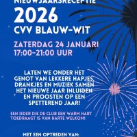 Op zaterdag 24 januari 2026 is de nieuwjaarsreceptie van 17:00 - 21:00 uur. Laten we onder het genot van lekkere hapjes, drankjes en muziek het nieuwe jaar inluiden en proosten op een spetterend jaar!